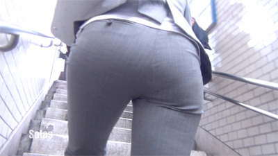 【FHD高画質】柔らかヒップのグレーパンツOL
